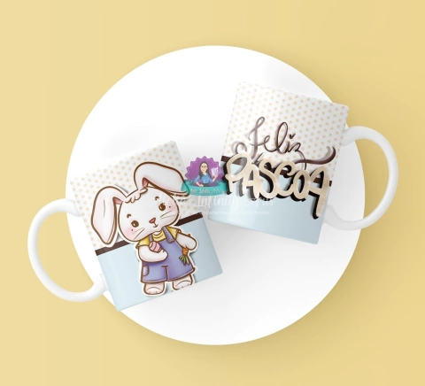 Caneca Coelhinho Feliz Páscoa Poá e Azul - 1un