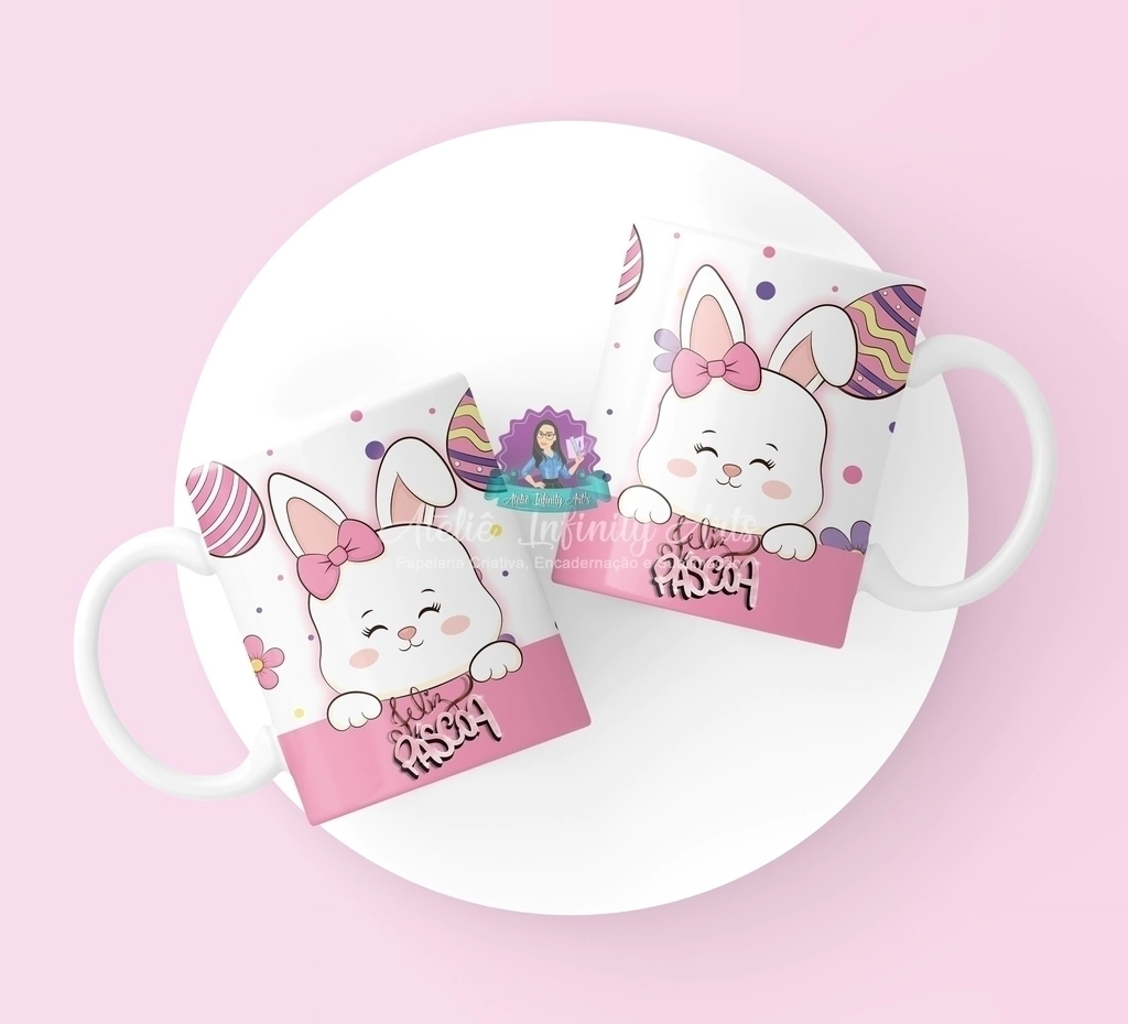 Caneca de Páscoa Coelhinho Lacinho Rosa - 1un